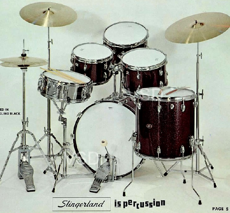 Slingerland: 1963 (BDP, 13/16/22), 1966 (Sparkle red, 13/16/20)