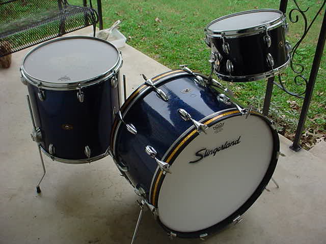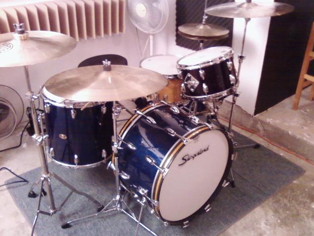 I just picked up this Slingerland kit in a blue glass glitter for, black/gold Niles badge.