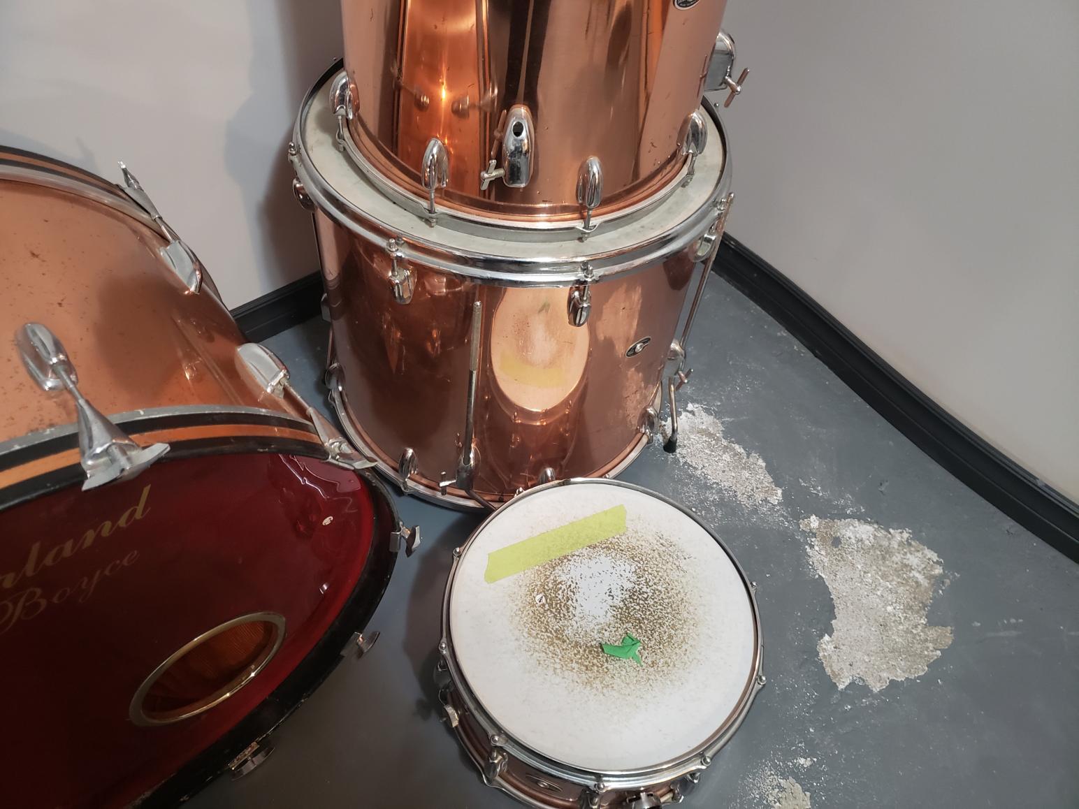 Looks like they added the 26, 13 and 16 later on. So originally, 24 BD, the snare, and the 14, 15 and 20. Big boy drum set that got bigger. As I stated before, a very cool time-capsule and huuuuge drums. Bring the thunder, DrumOgre! Bring the thunder.