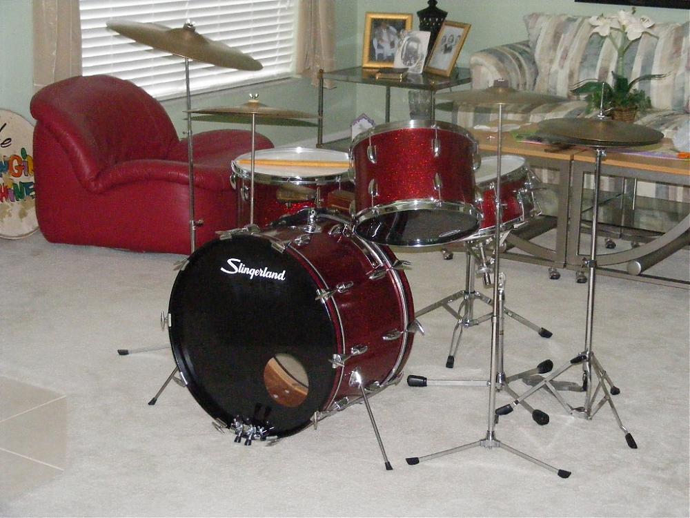 I just re-did the hoops on my 1959 Slingerland set, used Strip-X stripper to strip off the old paint using a toothbrush to loosen the gunk. Wiped off with paper towels, then gently went around the edges of the inlay channel with a flat blade screw driver to make sure I had clean edges. Then found a small tub of Duron fill & patch vinyl spackling in the garage that worked like a charm filling the dents & scratches from the pedals, etc. Let it dry, sanded lightly, then went over it with steel wool to make sure there were no little snags. Sprayed Krylon Gloss Black, let it dry, turned it over and sprayed again...let that dry, hit it with steel wool again the next day and then sprayed a second coat the same way. Let that dry and it's beautiful. I discovered that the steel wool after the first coat is the secret to getting a smooth finish. When you put on the second coat it is really nice and smooth. Kept a fan blowing on them for a day or 2 before gluing on new inlays & putting them back on the drums.