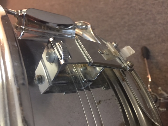 Is anyone familiar with this "different" Star butt plate. I'll describe it since I cant take pictures. It is from a vintage round badge, chrome Star snare. Probably late sixties to early seventies. The plate is attached to the shell by two vertical holes about 7/8 inches apart. The actual snare plastic ribbon attaches to the lower part of the plate in the conventional manner with two screws. This lower plate slides onto an upper. Both are connected with a screw on the mounts. A wheel through which the screw is threaded serves to turn it to loosen or tighten the wires. Also on the screw, there is a bolt that can also be adjusted. To be honest, I can't determine why it is there. This is almost like having a double strainer. The snare is equipped with a typical Star strainer of the ere. I know this is a difficult question to answer with no pictures but, I I know some of you guys are true experts!. I have searched but, to no avail. Oh! I have an identical Star snare with just a conventional butt plate. Thanks very much, guys!