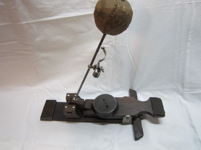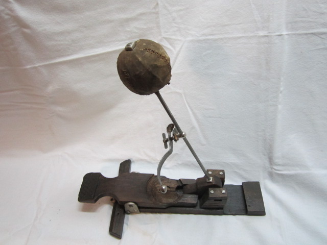 Here is a design that has withstood the test of time (?). It is a heel pedal with a two pound weight to return the beater position. There is a gap in the bottom piece to fit under your bass drum hoop instead of a hoop clamp. Very few moving parts to go bad...