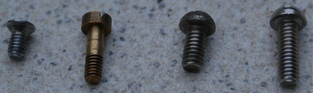 Is it a slotted round head mounting screw for the upper snare control knob to be 5/32 Withworth? The screws for mounting parts of the snare mechanism have the same diameter and thread as the lug mounting screws, only shorter.