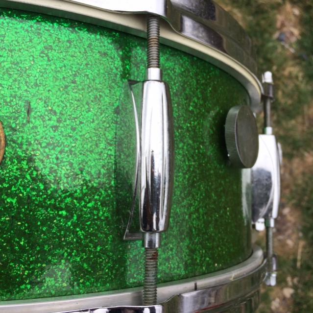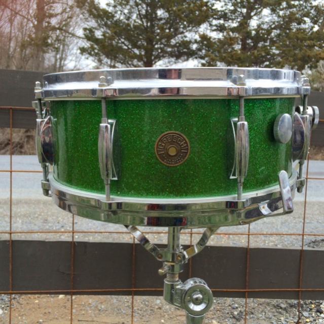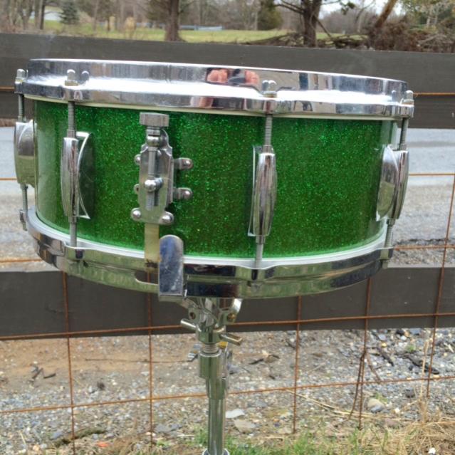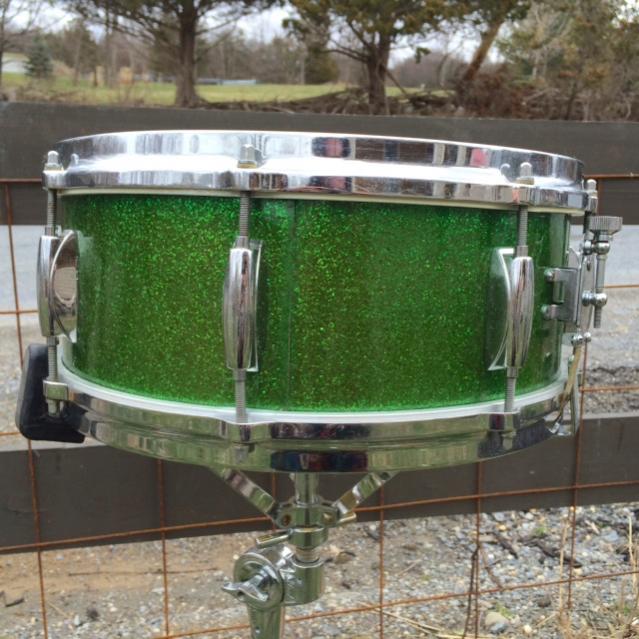 Vintage 60's Gretsch Round Badge model # 4157 5" x 14" snare drum in RARE green sparkle! -