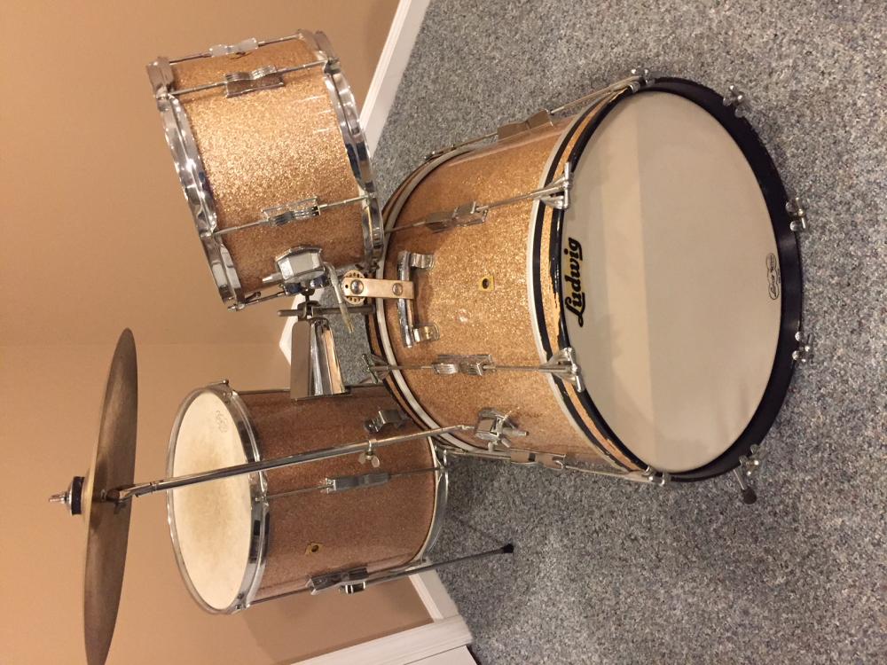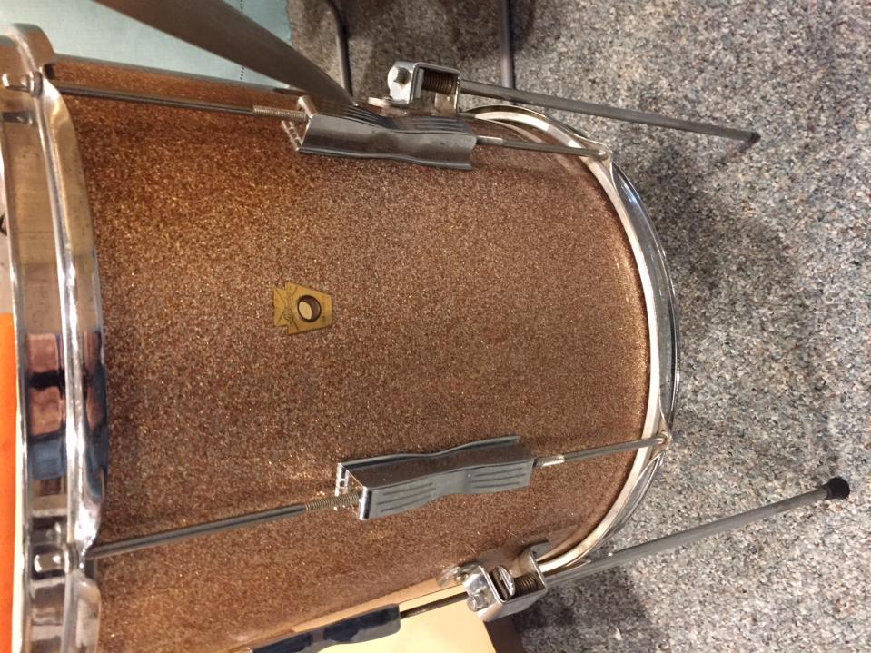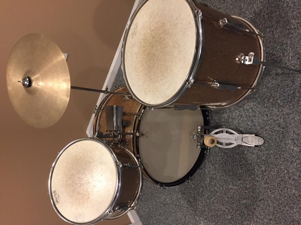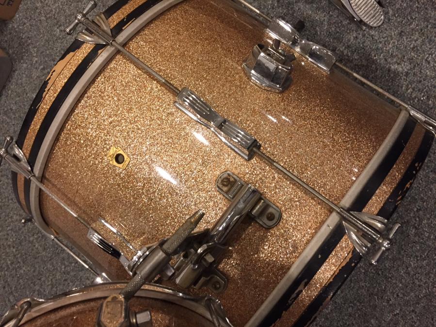 The tomtom and base drum were bought together for Christmas 1965 (I have the home movies to prove it). The floor tom was bought a year later (1966) for Christmas.