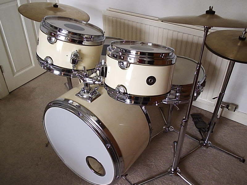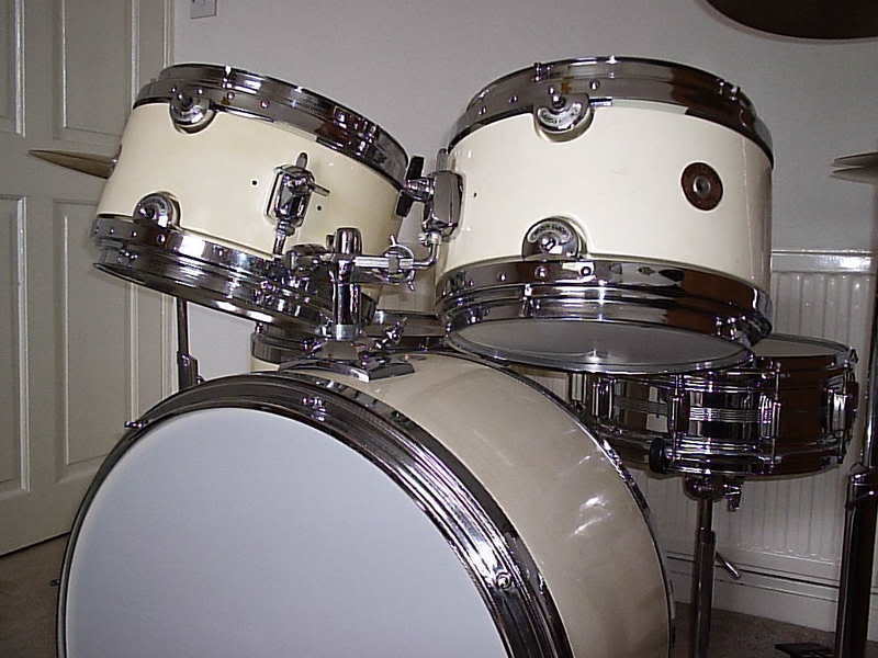 All the shells are fibre glass ....Sound wise very big with lots of attack ......The bass drum is cannon like....In answer to the question i got it locally from ebay UK..Once cleaned up with original snare drum its going back on ebay worldwide.....Ill post new pics once kit is ready for the big sell...As a last note i didnt get the stands or rogers snare drum...Thx....sean