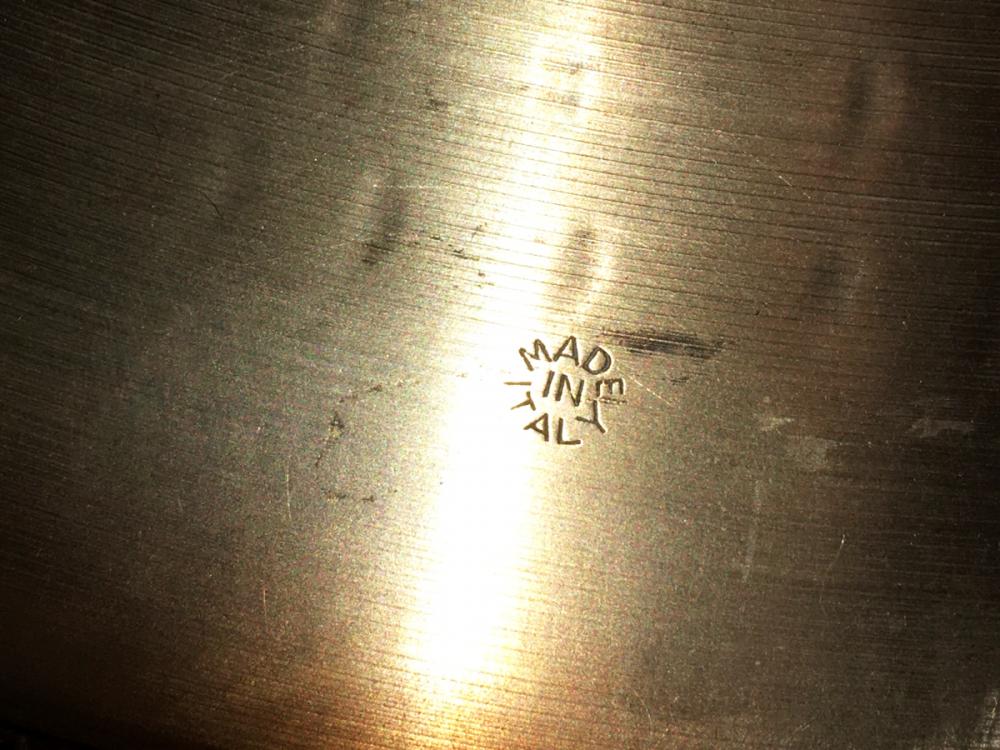 Given your information I'm now less certain than I was before about my two overhammered ones being 50s. They could be 40s for all I know. And my assumption was that not having the Pyramid Stamp made my "60s" one later. But your cymbal is evidence that this isn't true. The presence/absence of the Pyramid stamp may not be just chronology at work. Same with the MADE IN ITALY stamp presence/absence. It might or might not be chronology.