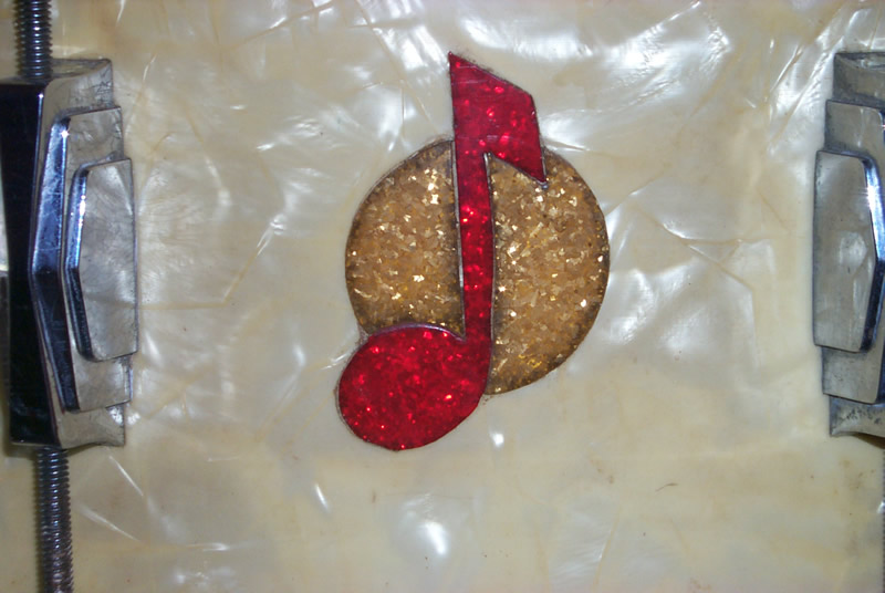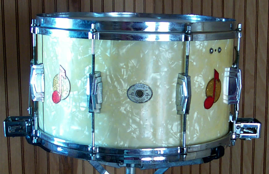 The drum is a a Super-Ludwig Super Sensitive in WMP (White Marine Pearl)