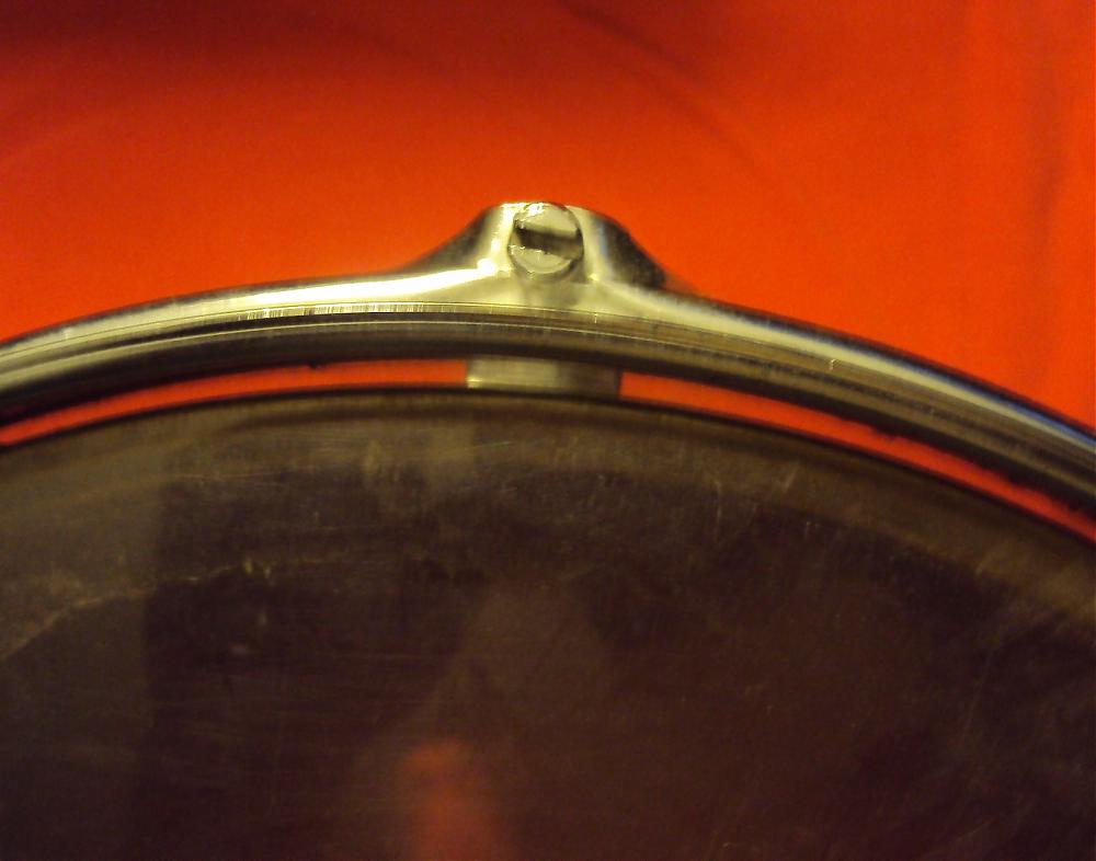 I hate that someone used a lug not designed for floating head hoops though. They do not extend far enough out to pull the hoop evenly over the cylinder. It creates a splay that pulls the hoop towards the center of the shell instead of down the shell. This will bend the ears and eventually the hoop as well as make it very hard to fine tune if at all.