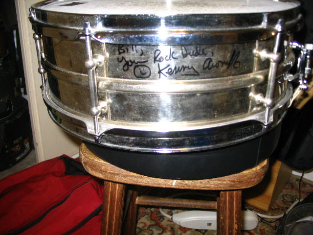 Set up and played by Kenny Arronoff during a couple lessons with him, who pronounced it a "A great ****in' drum!" Original rims and throwoff, and triple flange rims and modern throwoff, enabling it to be played reliably. About as clean as 90 year old drums get. Any interest? Bill D.