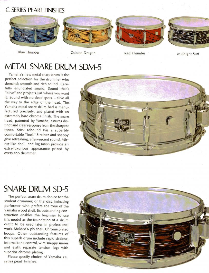 As I've said before, I don't think all the C series drums are the same. My red thunder kit is of the highest build quality. The shells are birch/lauan like the YD drums but with no coating on the interiors. The lugs are a different design to the YD series but are the same quality. I've worked on both models and the earliest kits have a great build quality. The entry level models from the early 70s are not finished to the same standard. So I believe it's possible to pick up a C series kit with the same quality of material and build as a YD kit. However, I know some of the C series kits in the thunder patterns etc have reinforcing rings and 6 lug snare and maybe aren't as good but I haven't worked with any of those.