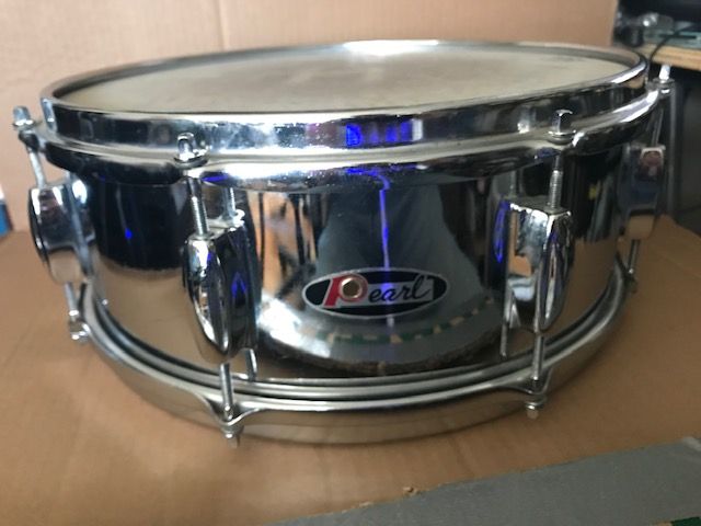 Was driving thru town. Glanced at a yard sale as we went by. Saw a chrome snare and stand beneath a table of assorted junk. Turned around , went back and pulled it out. Keystone Supra. Filthy, but all there. Minimal pitting. Original wires. Said she'd gotten it for her kids, but they never took to it. Tearing it down and into the Dawn bath! It's cleaning up very well. Gonna be a good one. I really enjoy saving stuff from being trashed.....